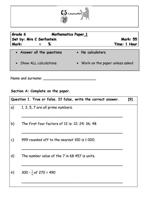Read grade 6 maths test papers PDF